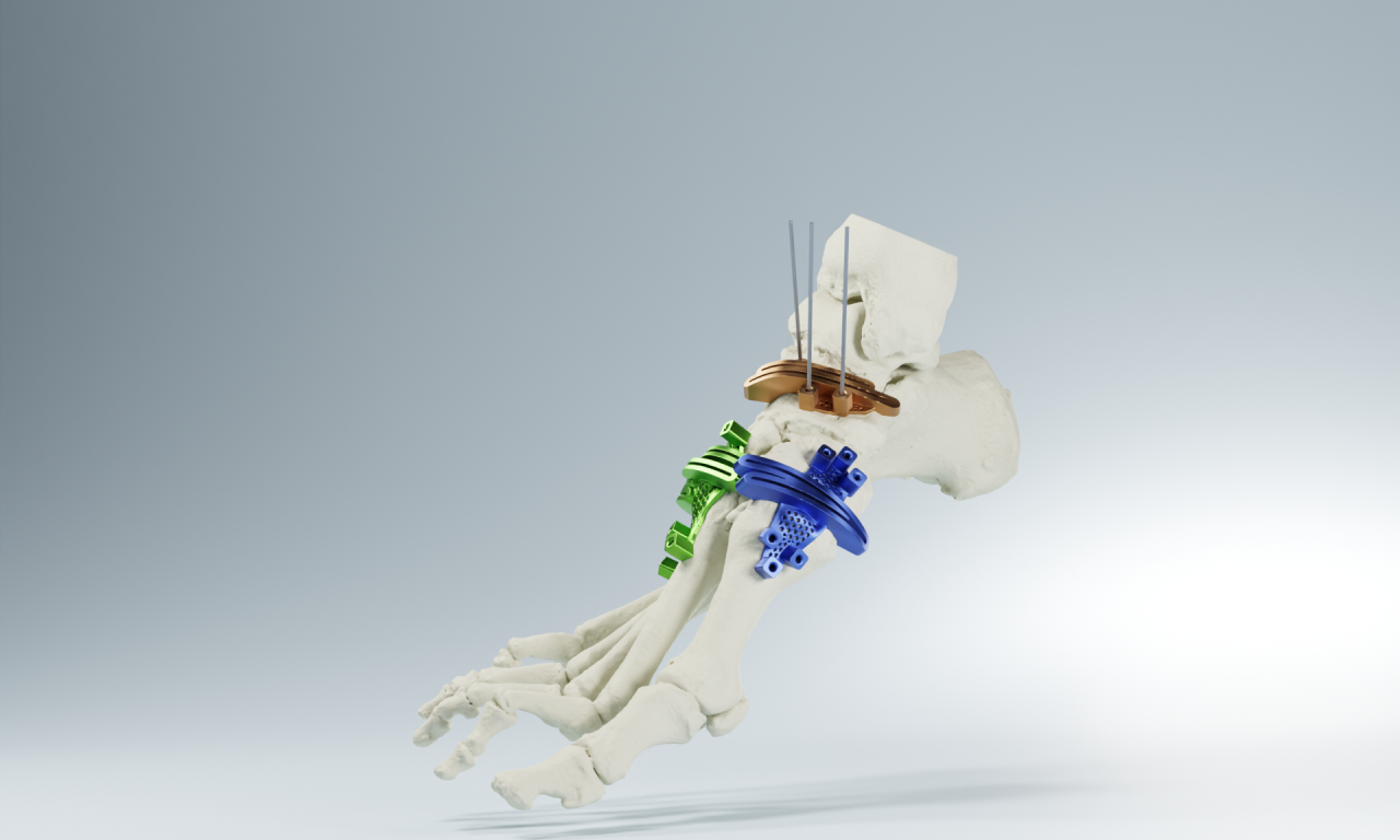 The AccuStride Foot + Ankle System delivers patient-specific surgical guides and anatomical models designed to optimize complex foot and ankle procedures. Using detailed CT imaging and surgeon input, each case is custom engineered for precision, alignment, and efficiency. Ideal for procedures such as Lapidus, proximal phalanx and metatarsal arthroplasty, cavus foot correction, and Charcot reconstruction, AccuStride supports correction of multiple deformities in a single procedure. Guides are manufactured in UV-curable polymers or titanium alloy.